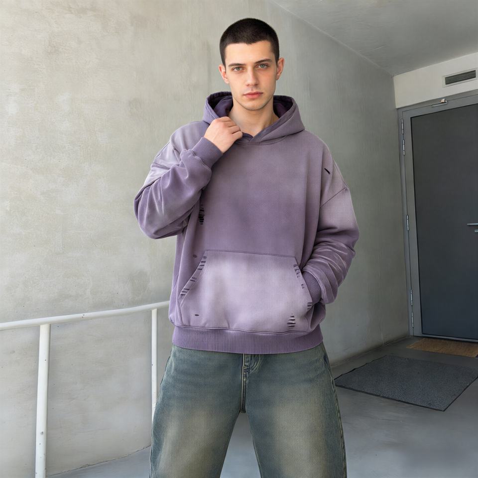 เสื้อฮู้ดดี้ผ้าหนา 460 แกรม ขายส่ง ผู้ผลิตยอดนิยม รับผลิตตามแบบ เสื้อฮู้ดดี้ทรงสลิมฟิต ผ้าฝ้าย 100% ทรงหลวมไหล่ตก สไตล์ดิสเทรส สำหรับผู้ชาย