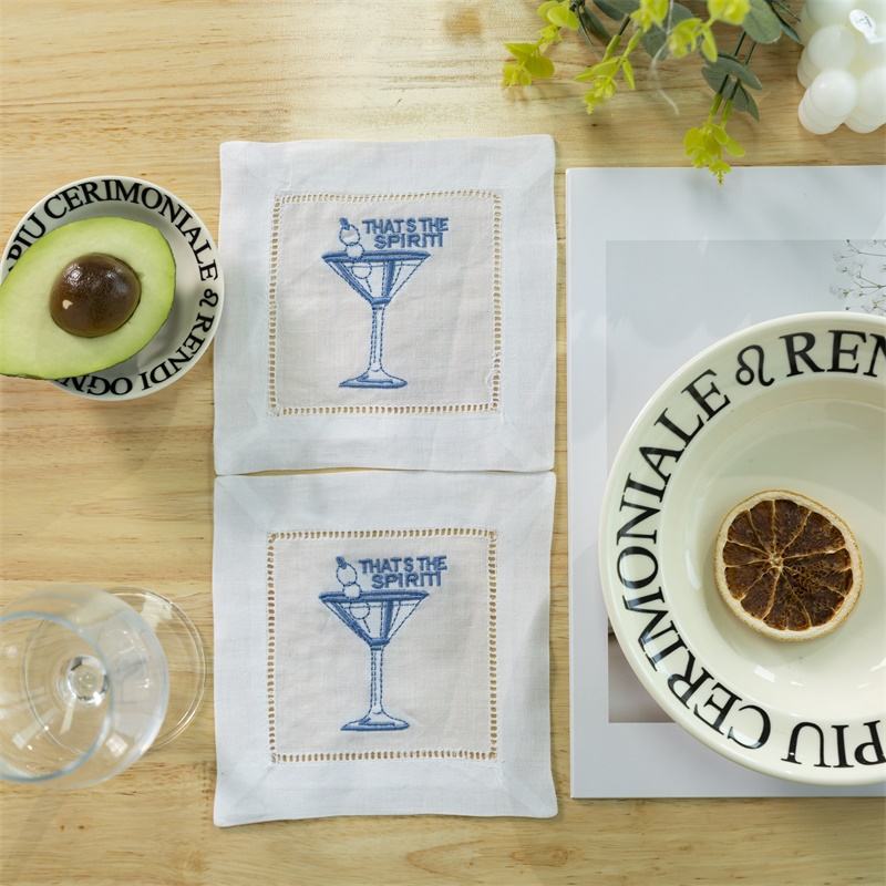 ชื่อผลิตภัณฑ์:ผ้าเช็ดปากที่รองแก้วค็อกเทลผ้าลินินปักโลโก้