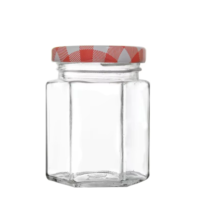 ขวดแก้วทรงหกเหลี่ยม45มล.-730มล. ใช้ซ้ำได้สำหรับเก็บอาหารสำหรับบรรจุน้ำตาล