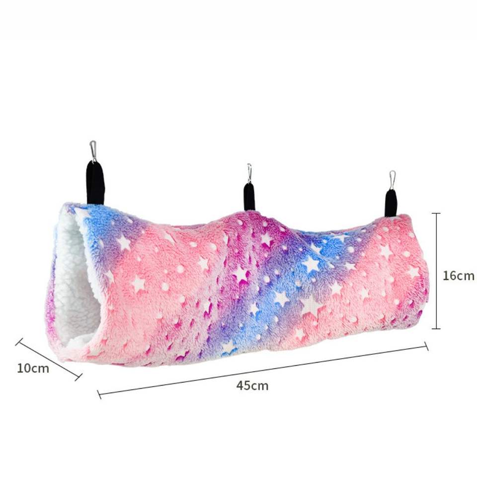ที่นอนรังในอุโมงค์สำหรับบ้านหนูแฮมสเตอร์ถ้ำที่อบอุ่นสัตว์เล็กหนูตะเภาเครื่องร่อนน้ำตาลผ้ากำมะหยี่ขนแกะกลมสำหรับฤดูหนาว