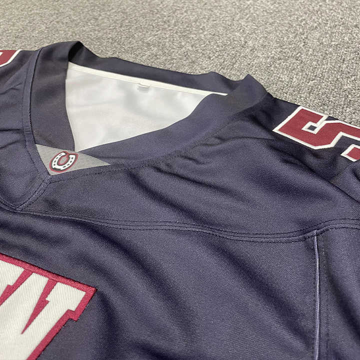 เสื้อเจอร์ซี่อเมริกันฟุตบอลเสื้อกีฬาพิมพ์ลายหมายเลขโลโก้ตามสั่งเสื้อกีฬาอเมริกันฟุตบอลมีความต้องการสูง