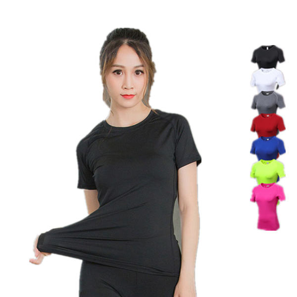 Wholesale High Elastic Polyester Spandex Quick Dry Tight Gym Fitness Running Ladies Tshirt Custom logo Sports T-shirt for men