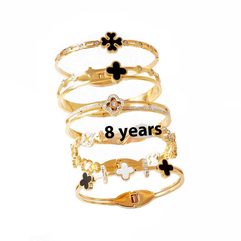 กำไลข้อมือสตรีสแตนเลสชุบทองคำแท้ ดีไซน์ Clover คุณภาพสูง ไม่ลอก ไม่ดำ แฟชั่นทันสมัย ขายส่ง