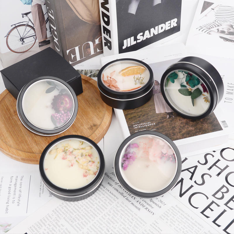 เทียนหอมอโรมาเธอราพีเกรดสูงสีดำขี้ผึ้งถั่วเหลืองพร้อมดอกไม้แห้งกุหลาบมะนาวแฮนด์เมดของขวัญ