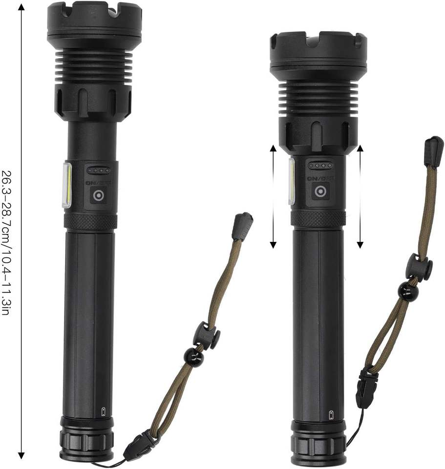 ไฟฉาย XHP90 ความสว่างสูงแบบขายส่ง ชาร์จ USB ได้ ไฟฉาย LED P90 COB แบบพกพา พร้อมพาวเวอร์แบงค์