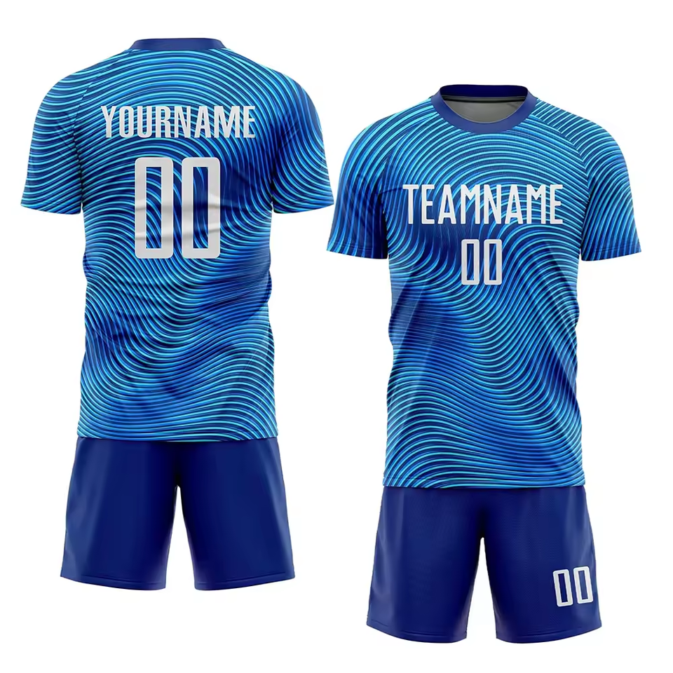 ชุดฟุตบอลผู้ใหญ่คุณภาพสูงขายส่ง โพลีเอสเตอร์ 100% รับผลิตตามสั่ง พิมพ์ชื่อทีมและตัวอักษร แห้งเร็ว