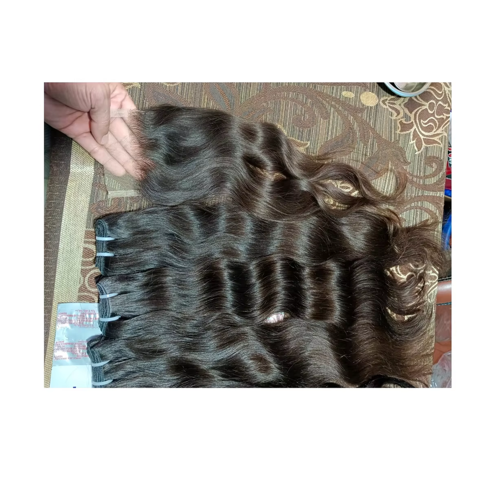 ผมต่ออินเดียแท้ 100% คุณภาพสูง แบบธรรมชาติ ลอนฟูมิ ทอสองชั้นด้วยเครื่องจักร ทุกสี ผมแท้