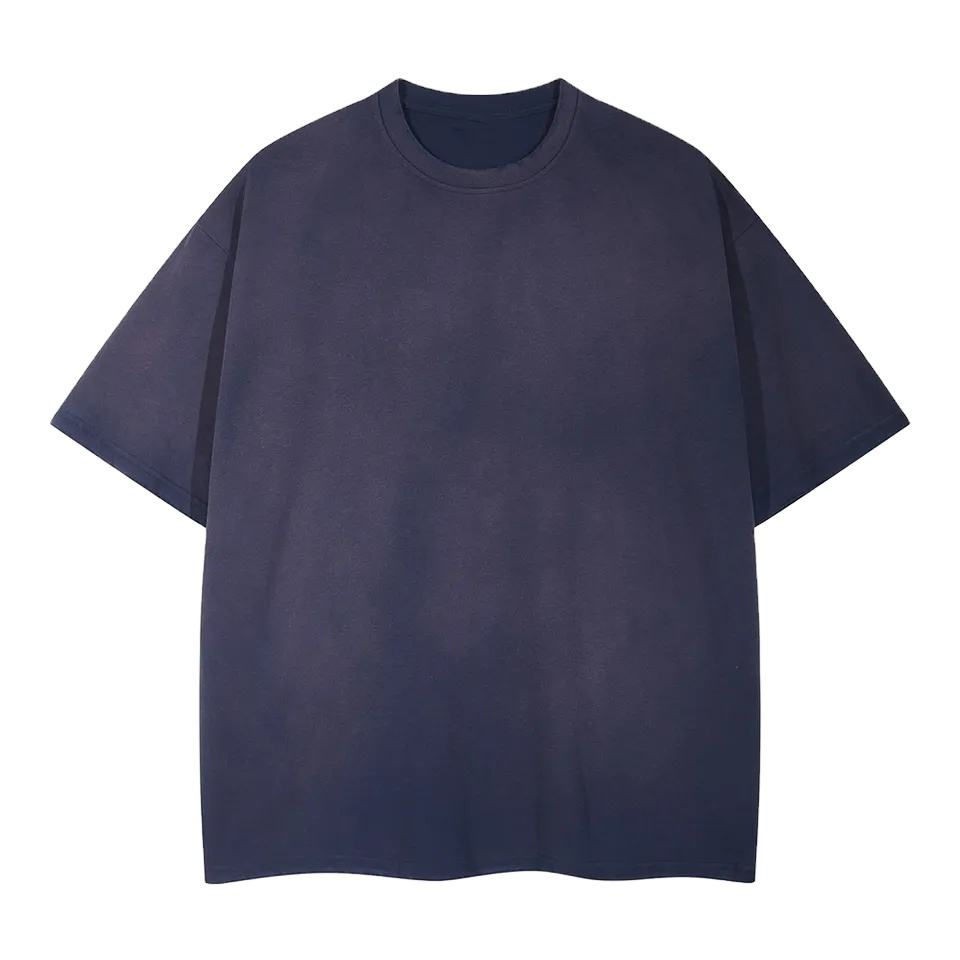 เสื้อยืดคอลูกเรือผ้าฝ้าย100% วินเทจแอซิดกันแดดทรงบ็อกซี่ฟิตเนสเสื้อยืดฝึกซ้อม