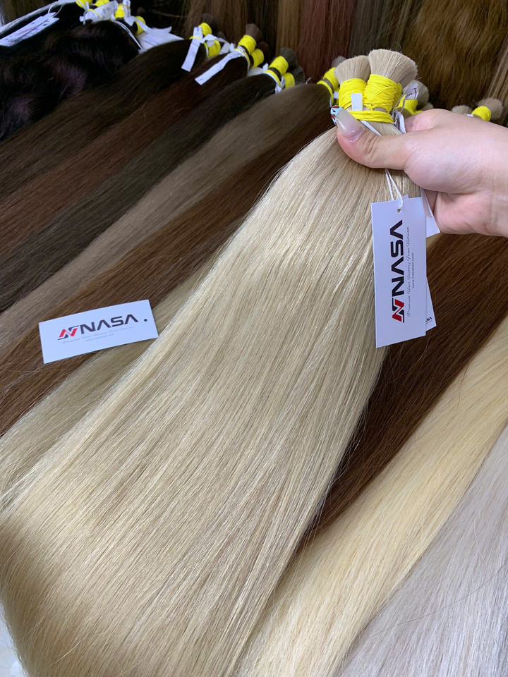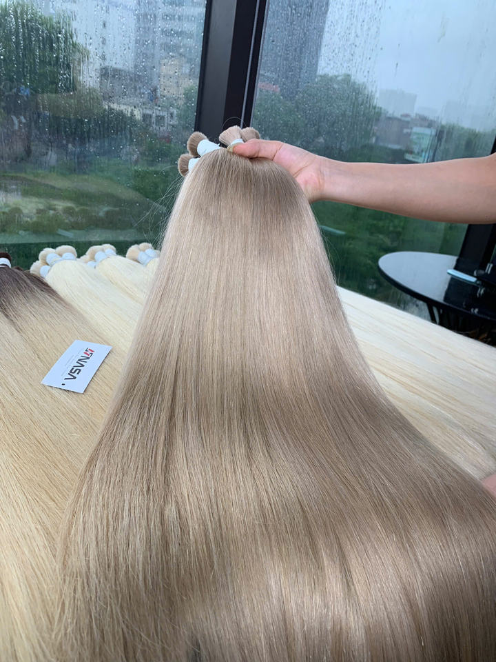 ผมต่อแท้คุณภาพสูง น้ำหนัก 100 กรัม ยาว 28 นิ้ว สีบลอนด์ แบบ Super Double Drawn ปลายผมหนาพิเศษ ขายส่ง