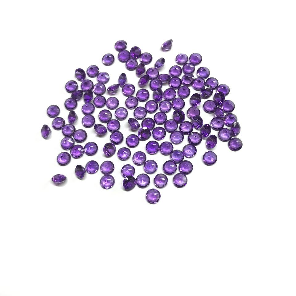 หินอเมทิสต์อเมทิสต์ธรรมชาติขนาด3มม. หินสีม่วงมีการรับรองโดยใช้ความร้อนมีขนาดให้เลือก