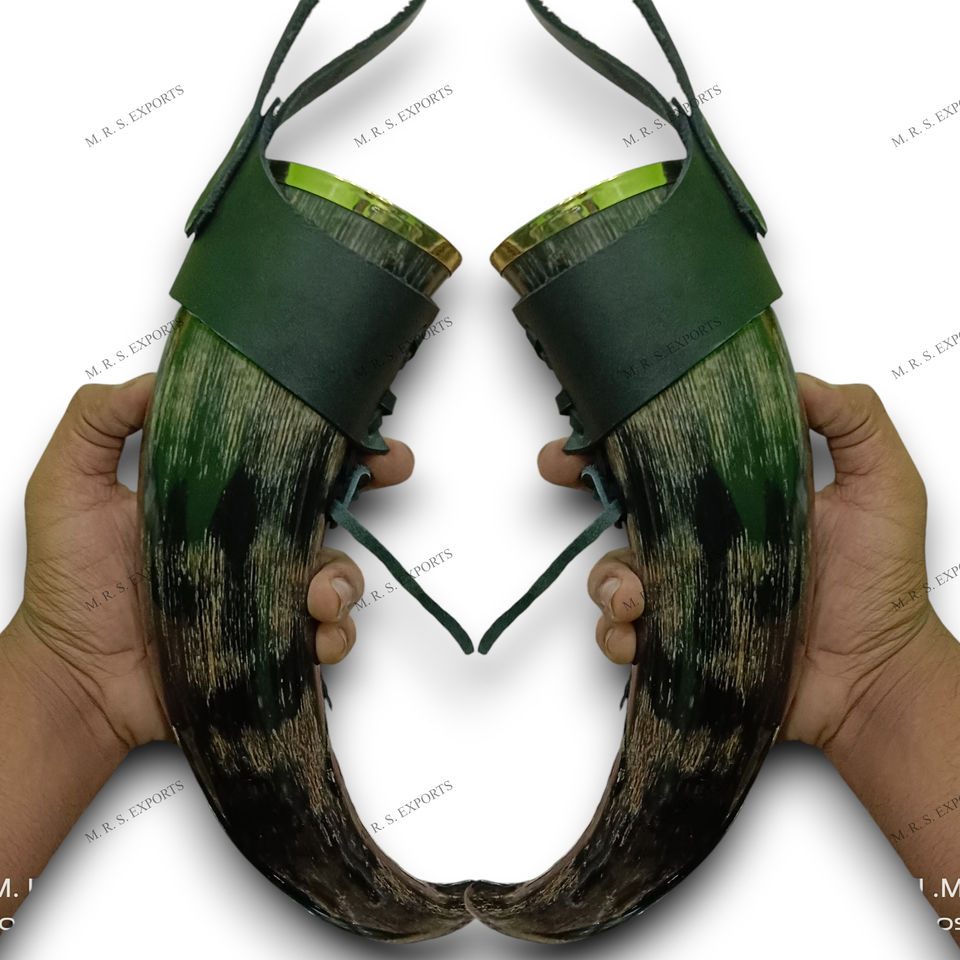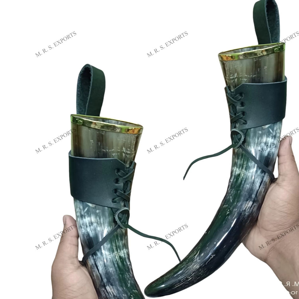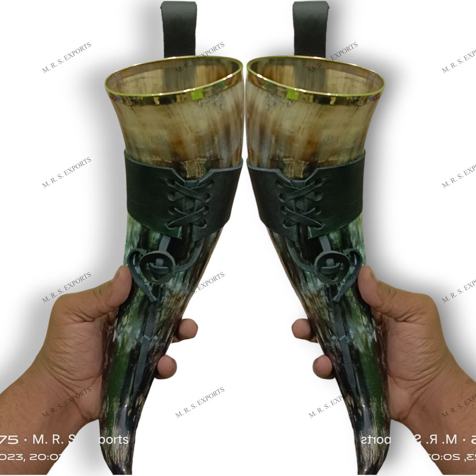2025ฮอร์นควายขนาด500มล. ขอบทองเหลืองไวกิ้งฮอร์นดื่มธรรมชาติพร้อมที่ยึดหนัง