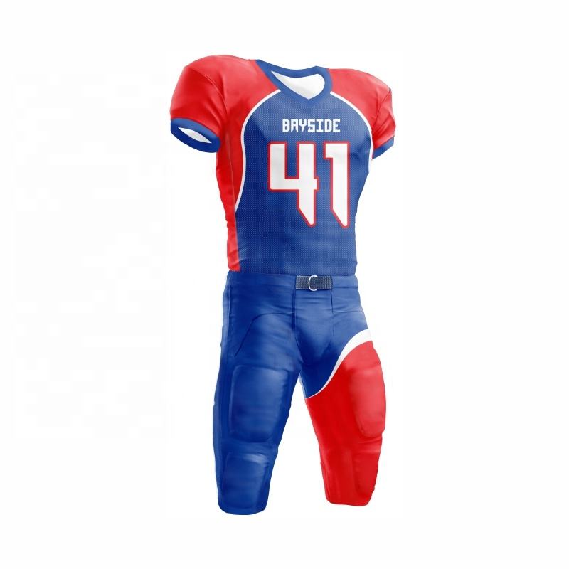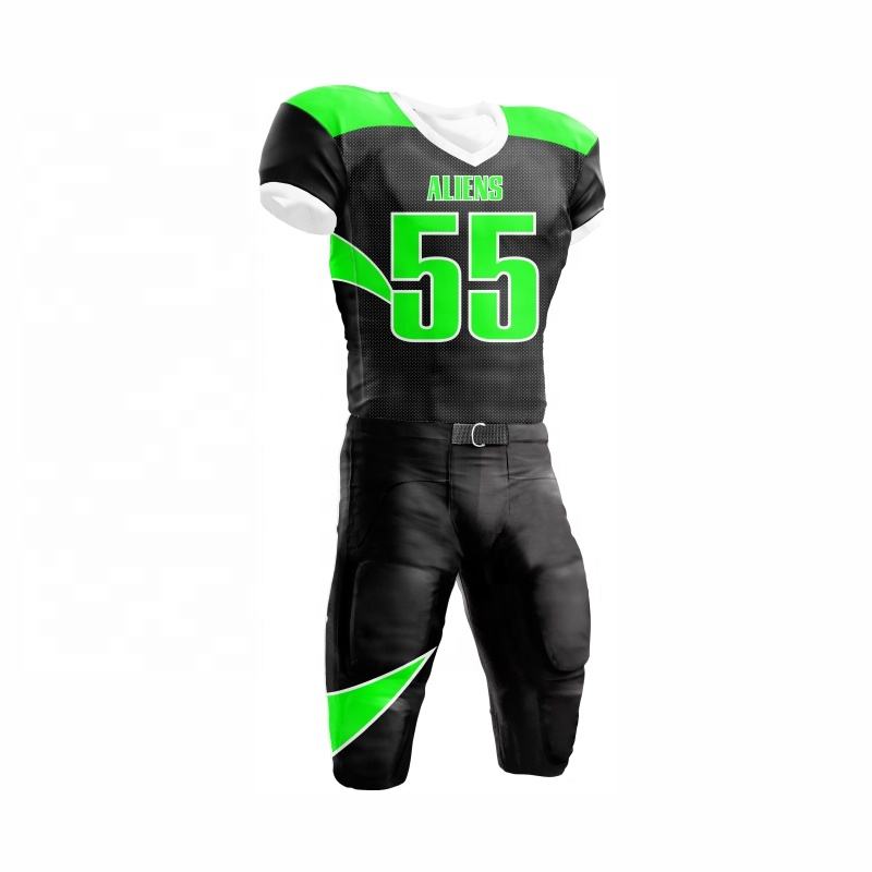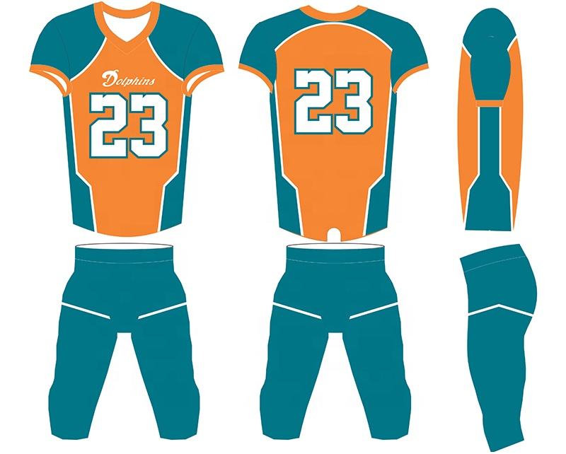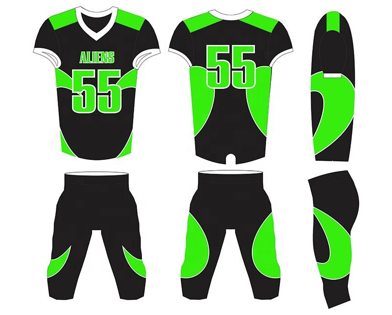 ชุดยูนิฟอร์มอเมริกันฟุตบอลแบบสั่งทำคุณภาพสูงขายส่ง พิมพ์ลายแบบซับลิเมชั่น ไซส์ใหญ่ แขนสั้น สกรีนชื่อทีมตามสั่ง