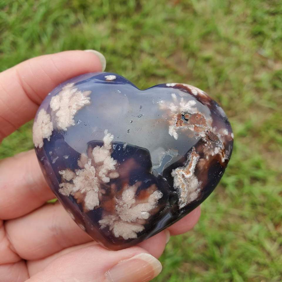 หินอาเกตสีน้ำเงินซากุระคุณภาพสูงขายส่ง รูปหัวใจ สำหรับเสริมฮวงจุ้ย คริสตัลบำบัด หินธรรมชาติขัดเงา ของตกแต่งบ้านตามเทรนด์แฟชั่น