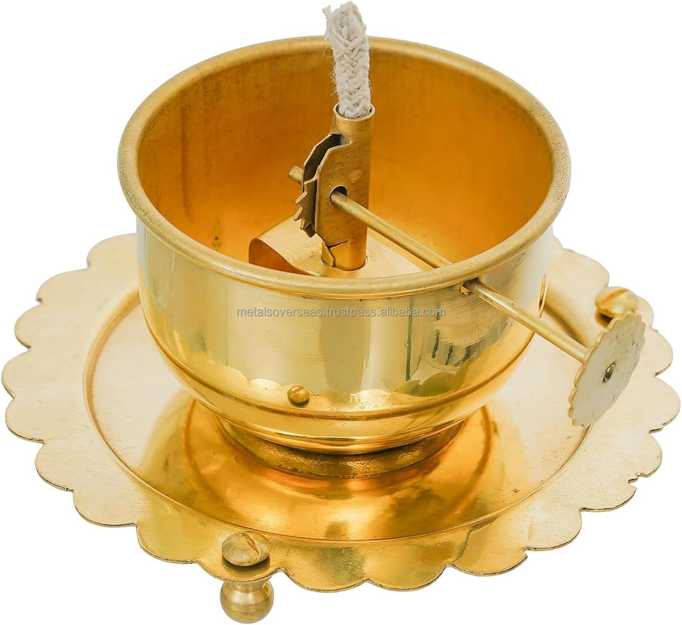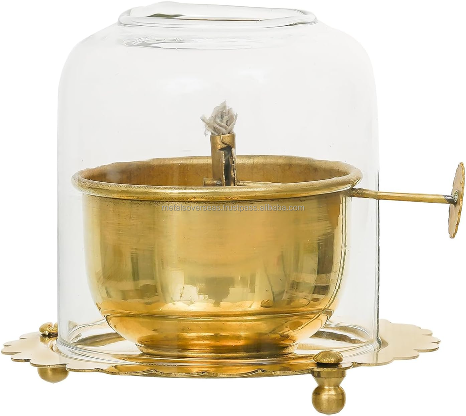 โคมไฟทองเหลืองคุณภาพสูงแบบขายส่ง โคมไฟจโยติแบบดั้งเดิมของอินเดีย สำหรับงานศาสนาและงานเทศกาล พร้อมฝาครอบแก้ว พิมพ์ลายดิจิทัล รับทำโลโก้ตามสั่ง