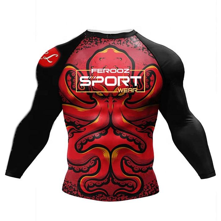 เสื้อกีฬาแขนยาวแบบรัดรูปคุณภาพสูง ระบายอากาศได้ดี ป้องกันแบคทีเรีย แห้งเร็ว สำหรับยิวยิตสู มวยไทย MMA BJJ แบบสั่งทำได้ ขายส่ง