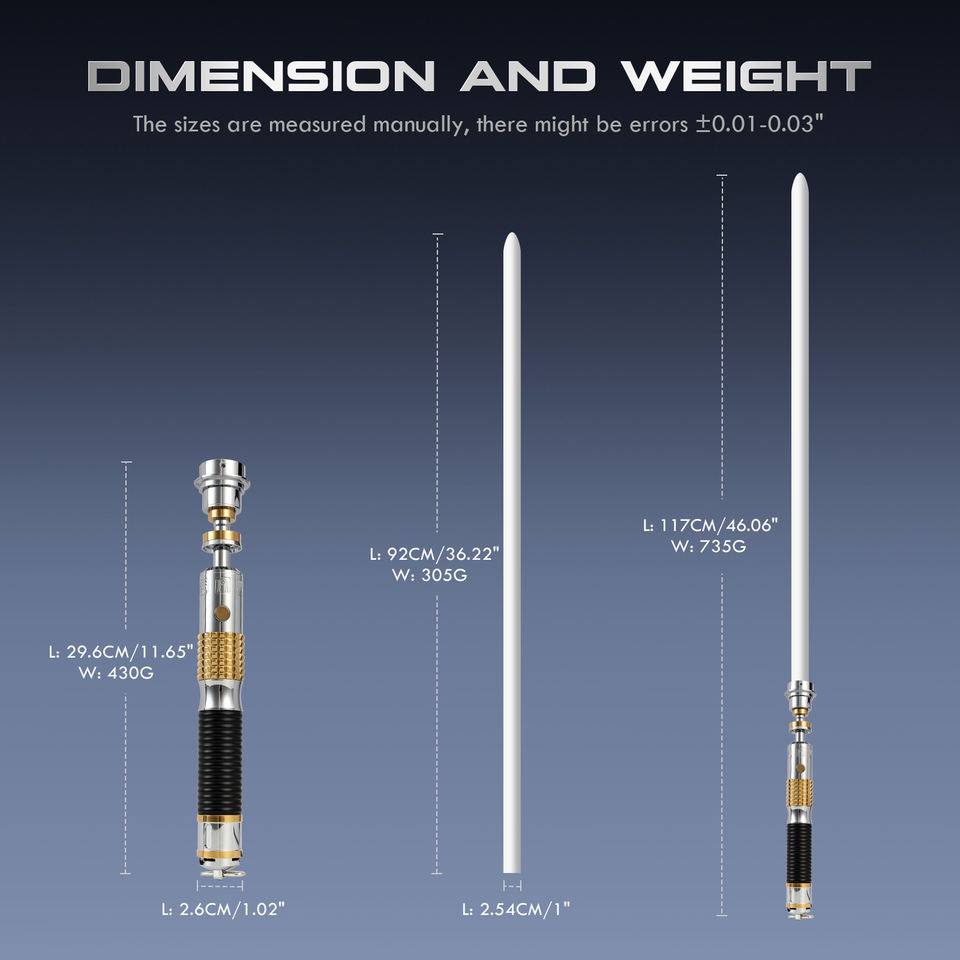 รายการในแพ็คเกจ:ด้ามจับไลท์เซเบอร์, ใบมีด, สายชาร์จ USB