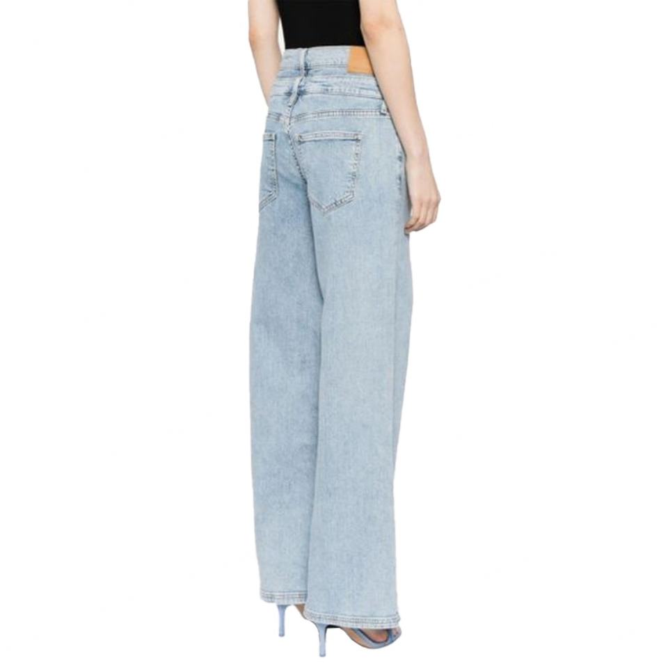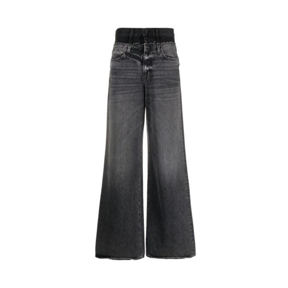 กางเกงยีนส์ทรงตรงหลวมสไตล์สตรีทแวร์คุณภาพสูงขายส่ง ใส่สบาย เอวสองชั้นทรงแบ็กกี้