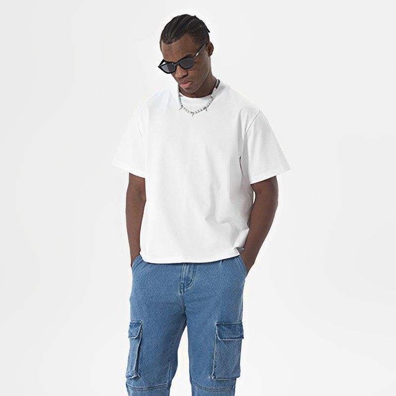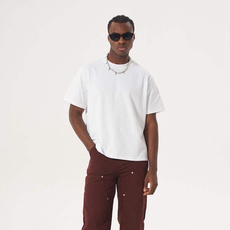 เสื้อยืดบ็อกซี่ผ้าคอตตอนสีพื้นสำหรับผู้ชายเสื้อยืดแห้งเร็วพิมพ์ลายปัก