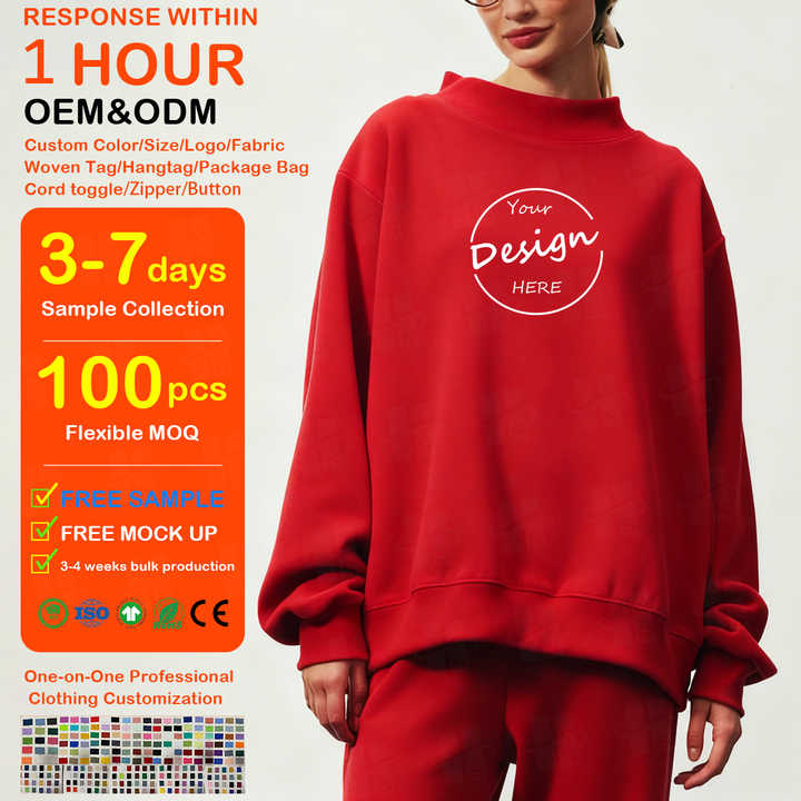 เสื้อสเวตเตอร์คอเต่าทรงหลวมผ้าฝ้ายฟลีซคุณภาพสูงขายส่ง ราคาพิเศษสำหรับผู้หญิง คอกว้าง ปักลาย สวมใส่สบาย