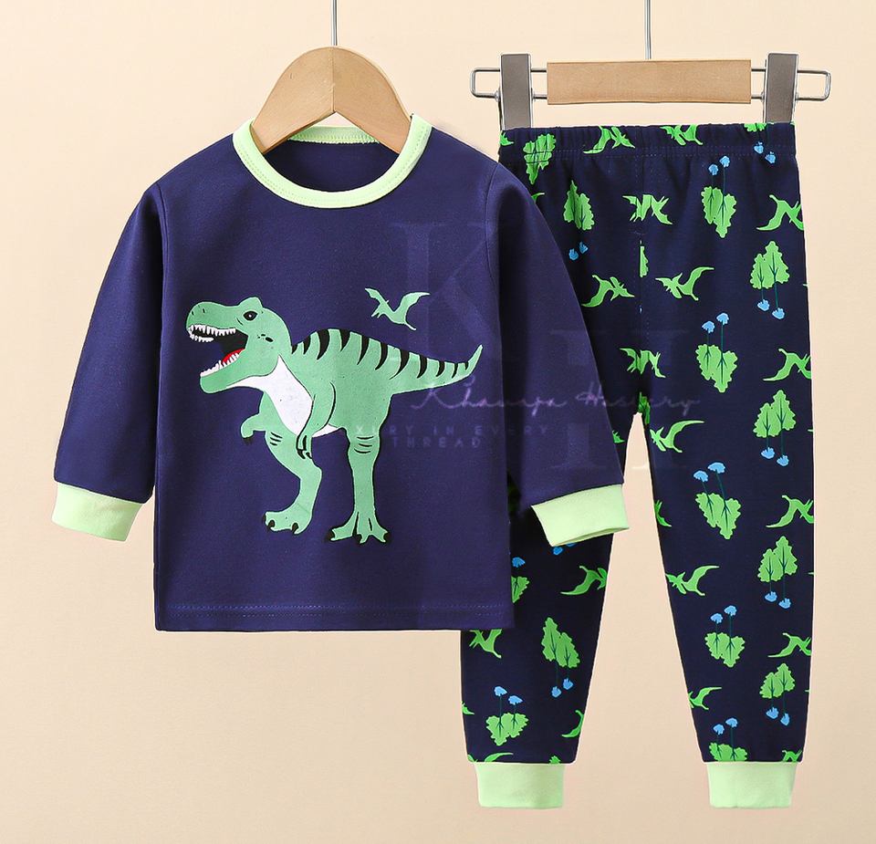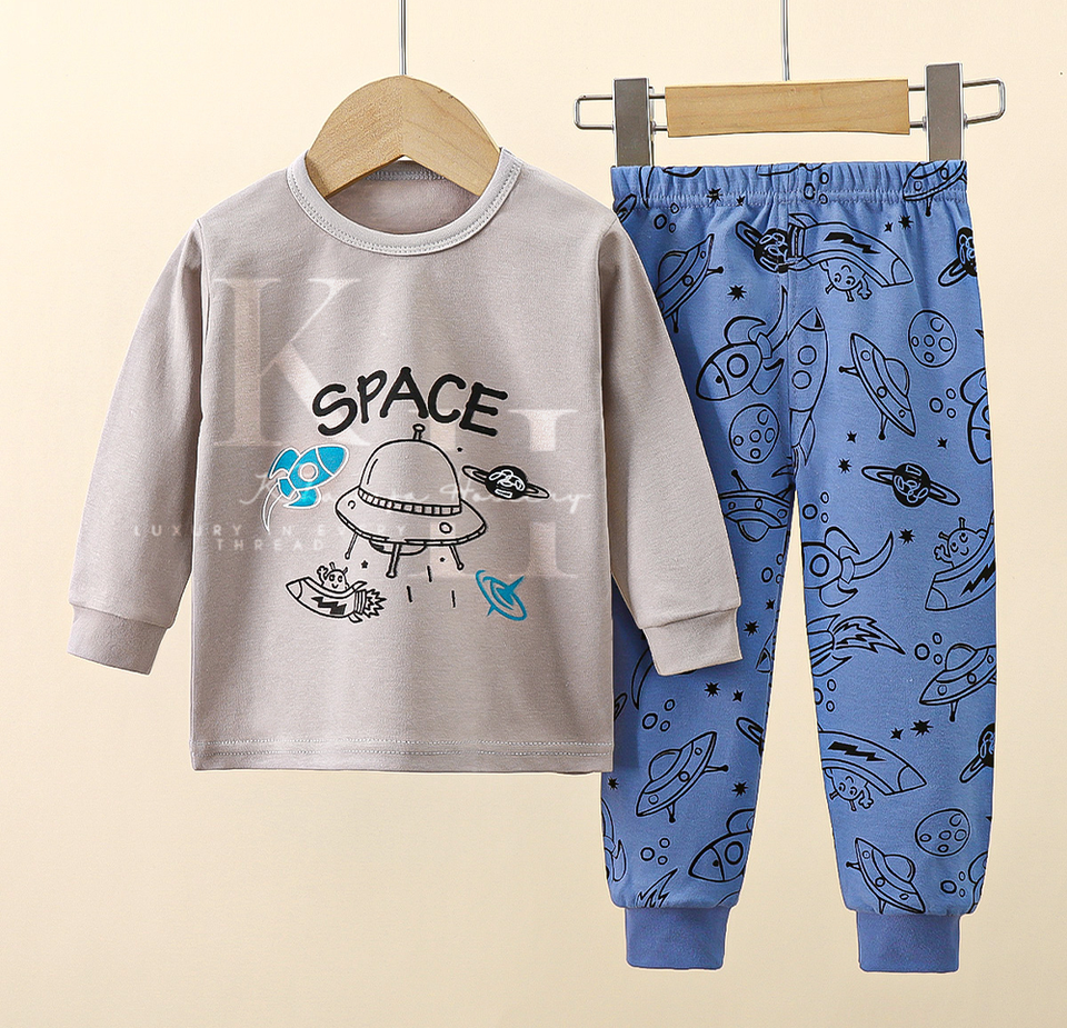 High Quality Kids Outfit Cute Cartoon Print Long Sleeve Cotton Sweater Set with Pants Solid Pattern for Boys Wholesale