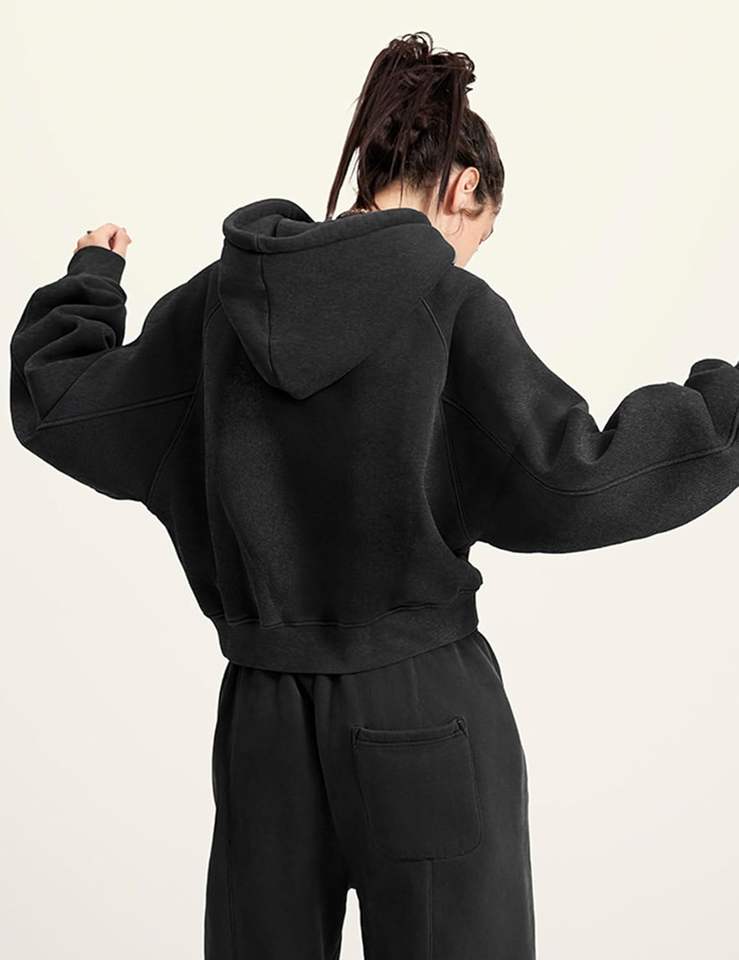 เสื้อฮู้ดครอปคุณภาพสูงขายส่ง แฟชั่นกลางแจ้ง ล้างสีแบบแอซิดวอช พิมพ์ลายพัฟฟ์ตามสั่งสำหรับผู้หญิง ผ้าฝ้าย 100%