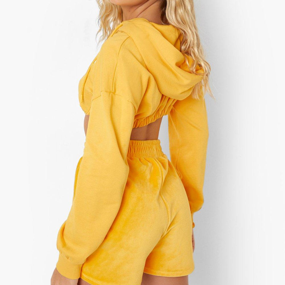 เสื้อครอปแบบมีฮู้ดสำหรับผู้หญิงเสื้อครอปมีฮู้ดแฟชั่นกลางแจ้งแขนยาวมีสไตล์