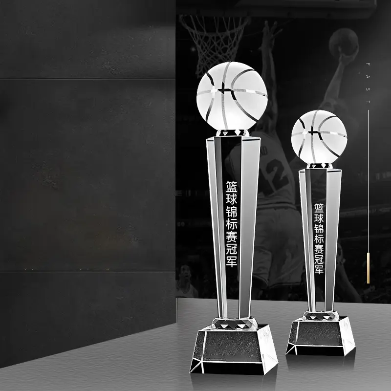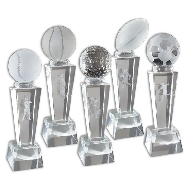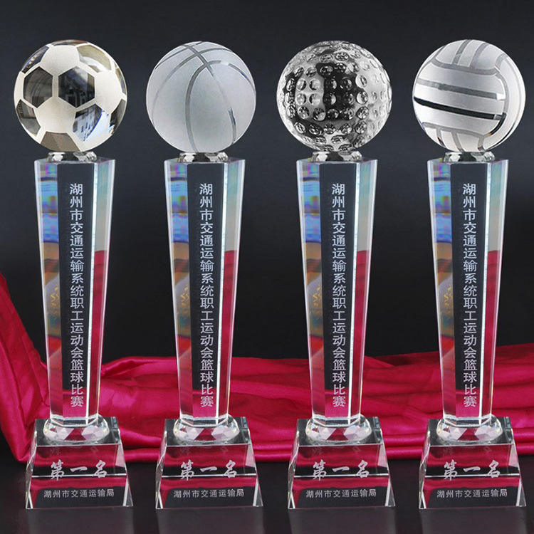 ถ้วยรางวัลคริสตัลคุณภาพสูงสำหรับกีฬาบาสเกตบอลและฟุตบอล รับผลิตตามแบบที่ต้องการสำหรับงานกีฬา