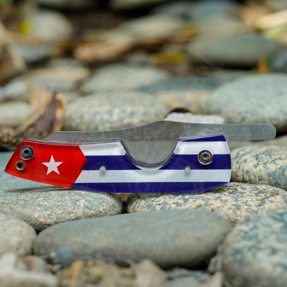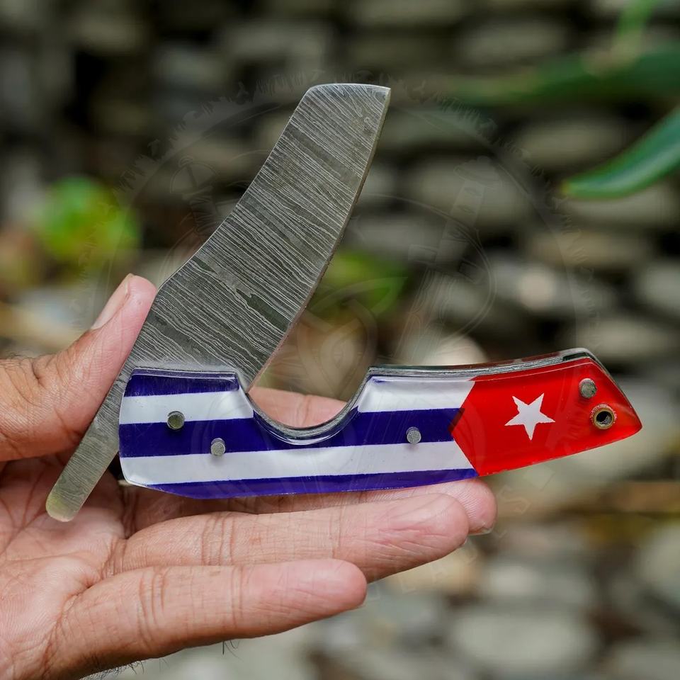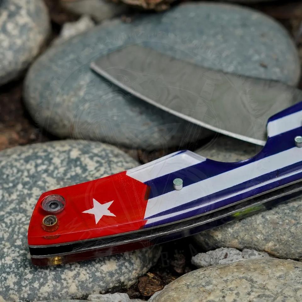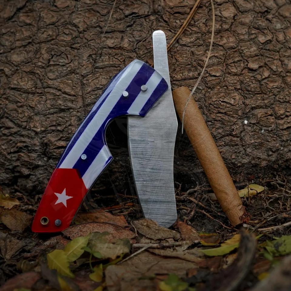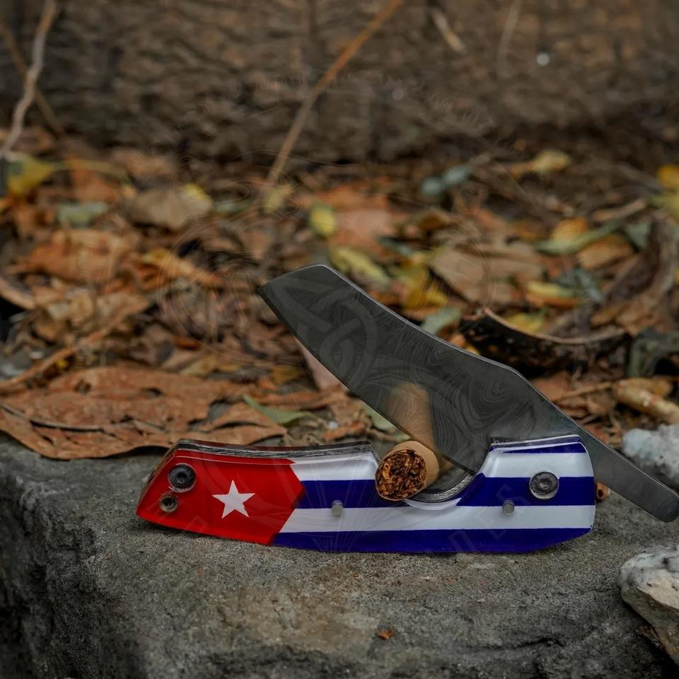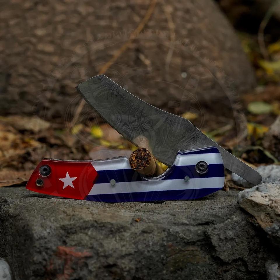 มีดตัดซิการ์ทำจากเหล็กดามัสกัสด้ามจับธงคิวบาพร้อมโลโก้ตามสั่ง