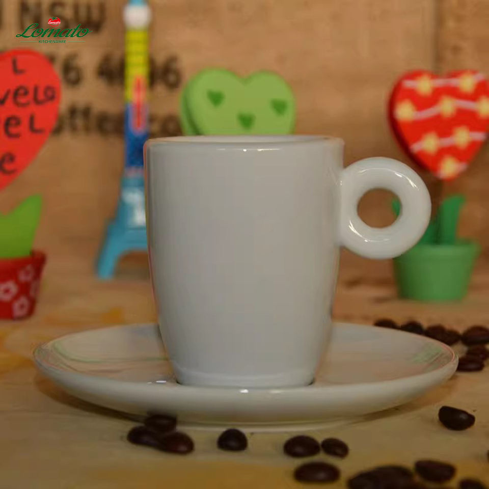 แก้วกาแฟเซรามิกคุณภาพสูงพร้อมจานรองแบบขายส่ง, แก้วเอสเพรสโซ่พอร์ซเลนสีขาวสำหรับร้านกาแฟ โรงแรม งานแต่งงาน, รับสกรีนโลโก้