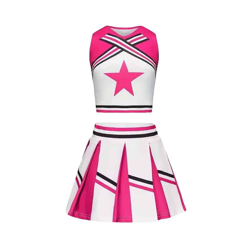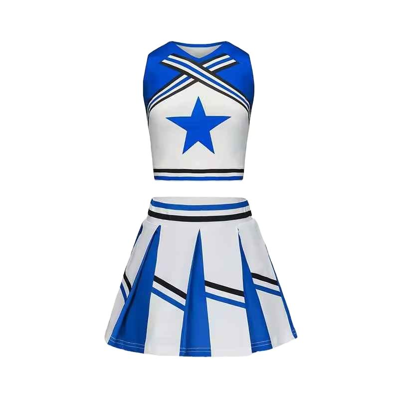 ชุดยูนิฟอร์มเชียร์ลีดเดอร์แบบพิมพ์ลายด้วยความร้อน น้ำหนักเบา ผลิตจากโพลีเอสเตอร์ 100% คุณภาพสูง ออกแบบตามสั่ง ขายส่ง บริการ OEM