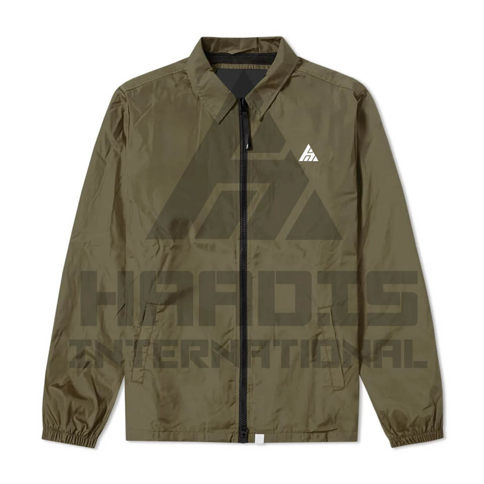 แจ็กเก็ตโค้ชของผู้ชายเสื้อโค้ชสีล้วนสำหรับฤดูใบไม้ผลิออกแบบโลโก้ได้ตามต้องการ