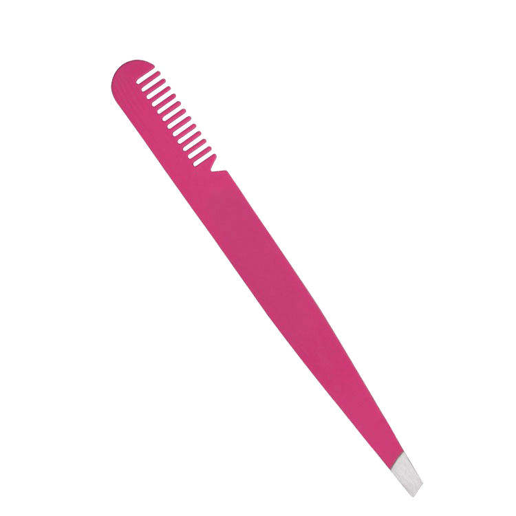 แหนบดึงขนคิ้วปลายโค้งสแตนเลสคุณภาพสูงพร้อมหวีติดโลโก้ตามสั่ง ขายส่ง มีสีชมพูให้เลือก น้ำหนักเบา ปลายไฟเบอร์