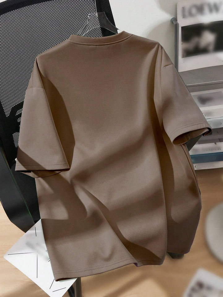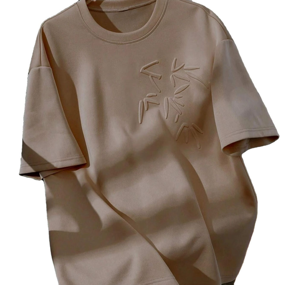 เสื้อยืดคอกลมแขนสั้นผู้ชายคุณภาพสูงแบบขายส่ง ลายตัวอักษรนูน ผ้า Worsted 100% ผ้าฝ้าย รับสกรีนโลโก้ตามแบบ