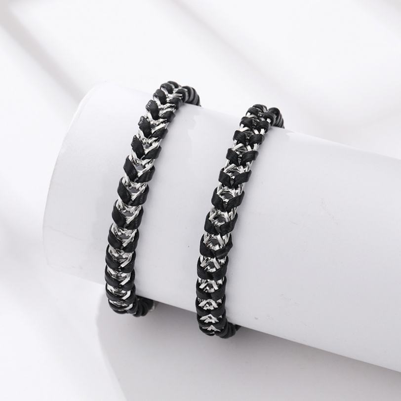 ขายส่งกำไลข้อมือหนังถักสแตนเลสคุณภาพสูงสำหรับผู้ชาย ดีไซน์ใหม่ทันสมัย ชุบทอง สไตล์อินเทรนด์