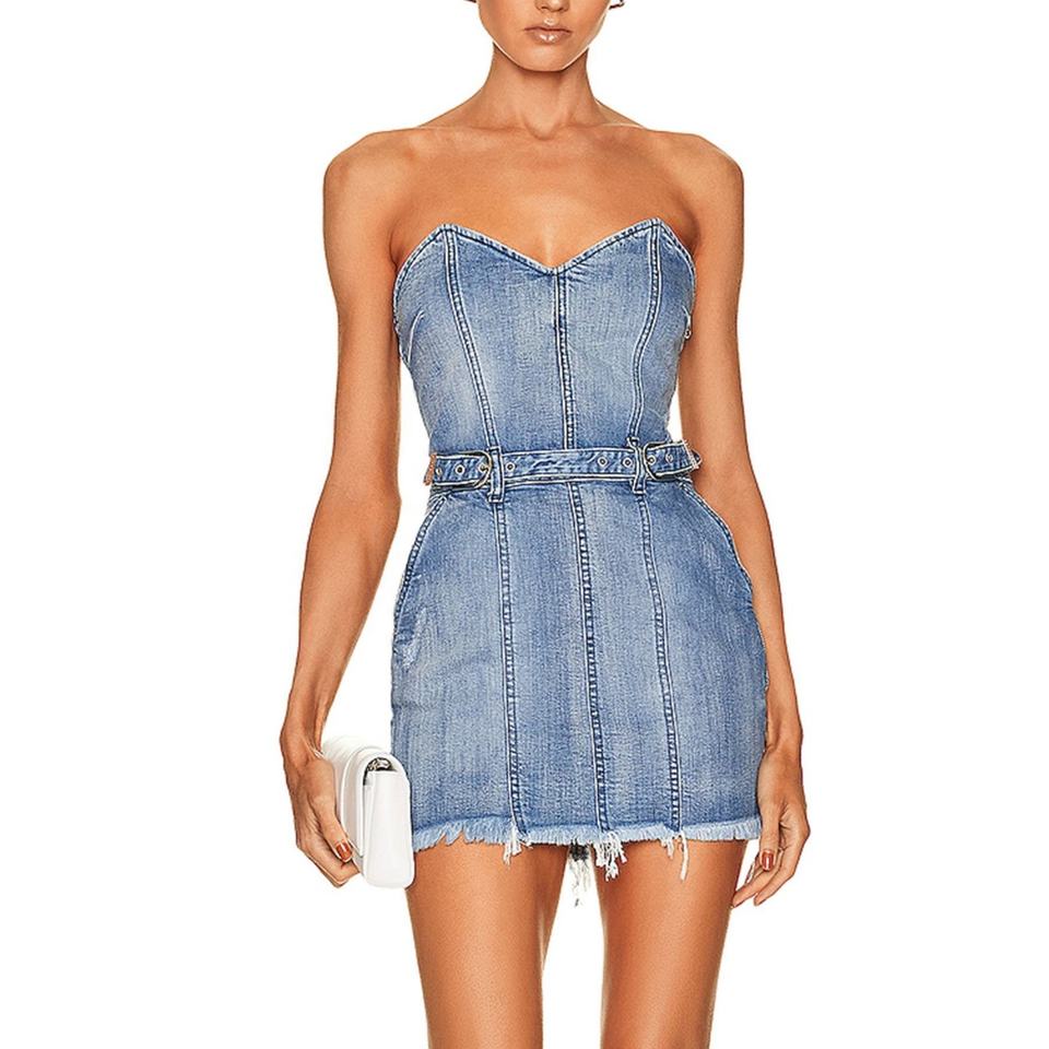 เดรสยีนส์คุณภาพสูงขายส่งสำหรับผู้หญิง ดีไซน์เซ็กซี่ สายเดี่ยว ทรงวินเทจ ฟอกสีซีด ซัมเมอร์ มินิเดรสเข้ารูป OOTD