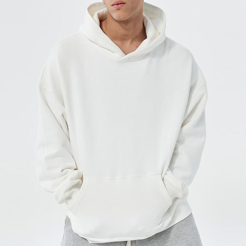 เสื้อฮู้ดดี้ผู้ชายคุณภาพสูงแบบขายส่ง ทรงหลวม ไหล่ตก สไตล์สตรีทแวร์ พิมพ์ลายพัฟฟ์หนา
