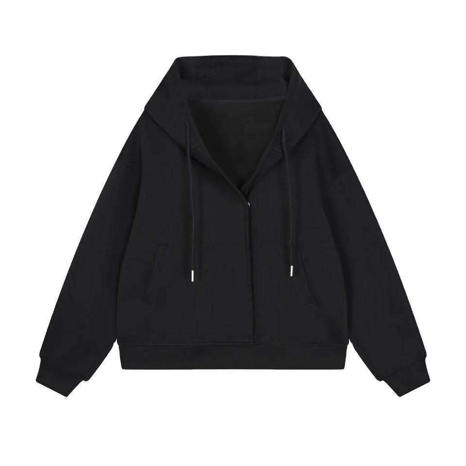 เสื้อฮู้ดดี้ผู้ชายผ้าฝ้ายหนานุ่มคุณภาพสูงแบบขายส่ง ทรงหลวม แขนยาว มีซิป กระเป๋า ซับในผ้าทวิล กระดุมติดหน้า