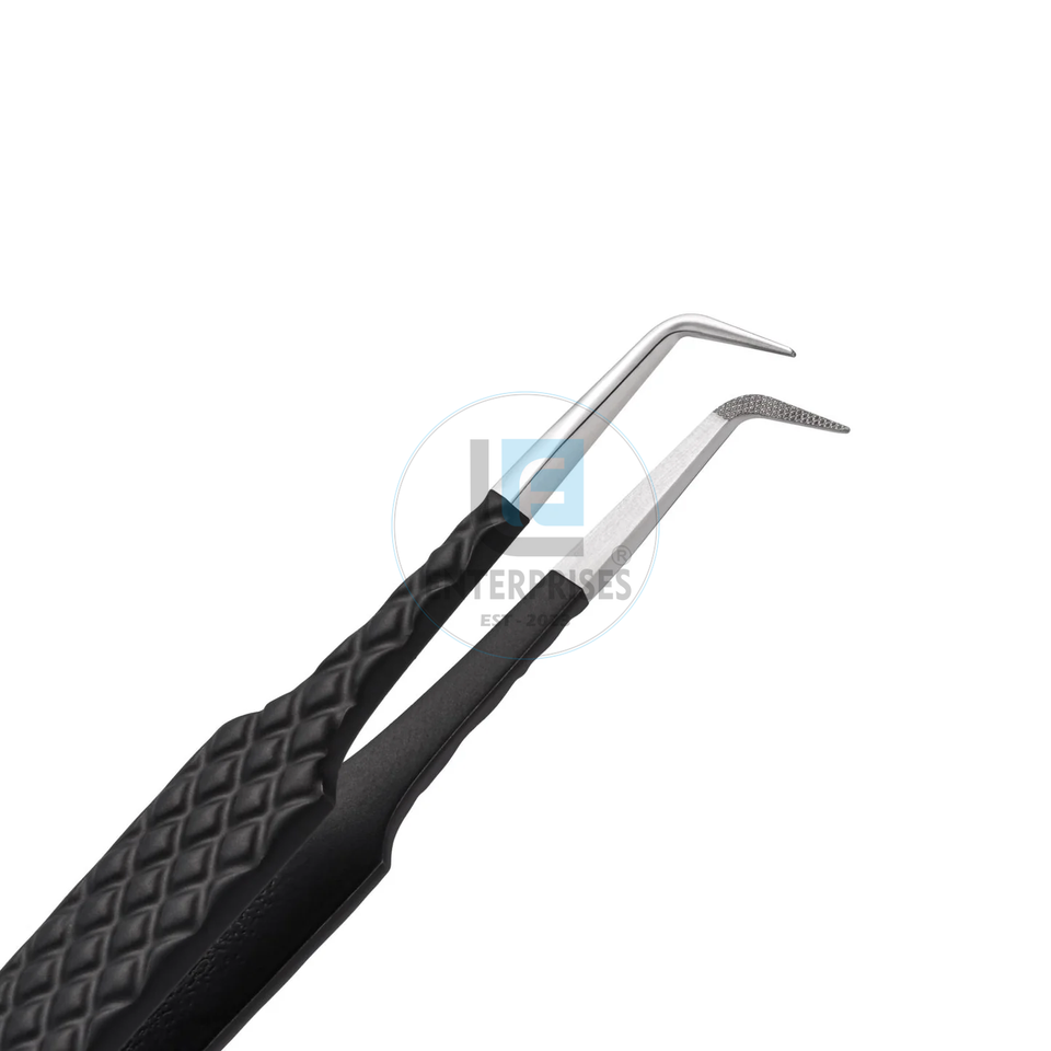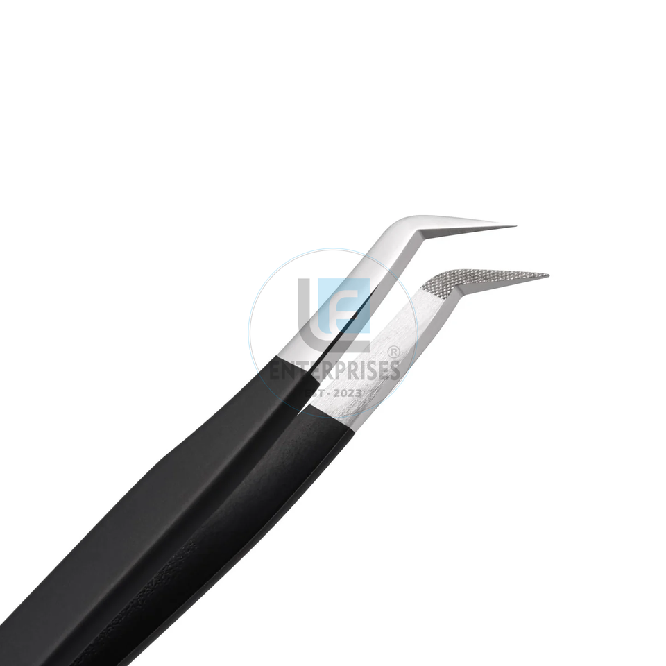 แหนบต่อขนตาสแตนเลสสีดำคุณภาพสูง ทนทาน ปลายแหลมแม่นยำ สำหรับการต่อขนตาอย่างสมบูรณ์แบบ ใช้ในร้านเสริมสวย