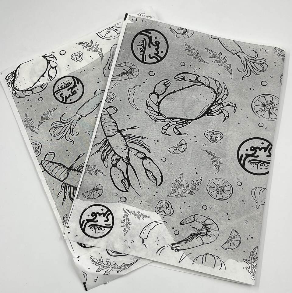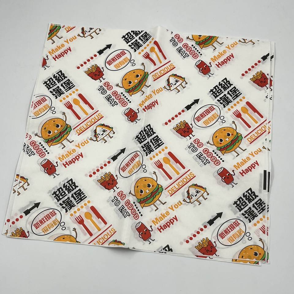 กระดาษห่อเบอร์เกอร์คุณภาพสูงสำหรับอาหาร ป้องกันไขมัน ทนความร้อน พิมพ์ลายได้ตามต้องการ ขายส่ง