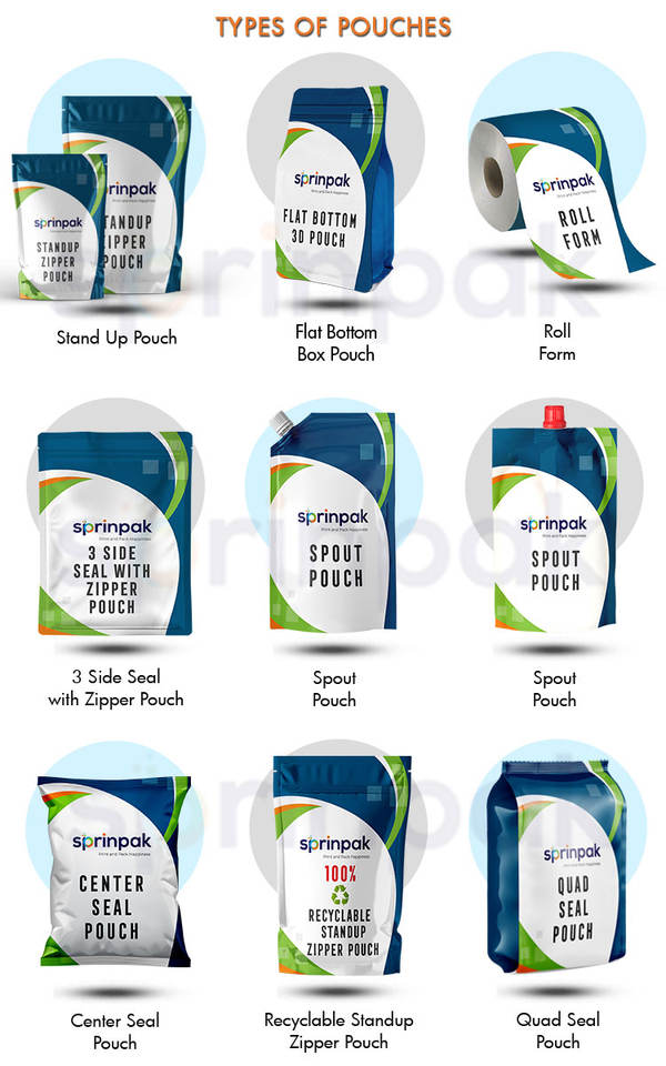 PET/ALU/PE, PET/METPET/PE/, PET/PE, etc.