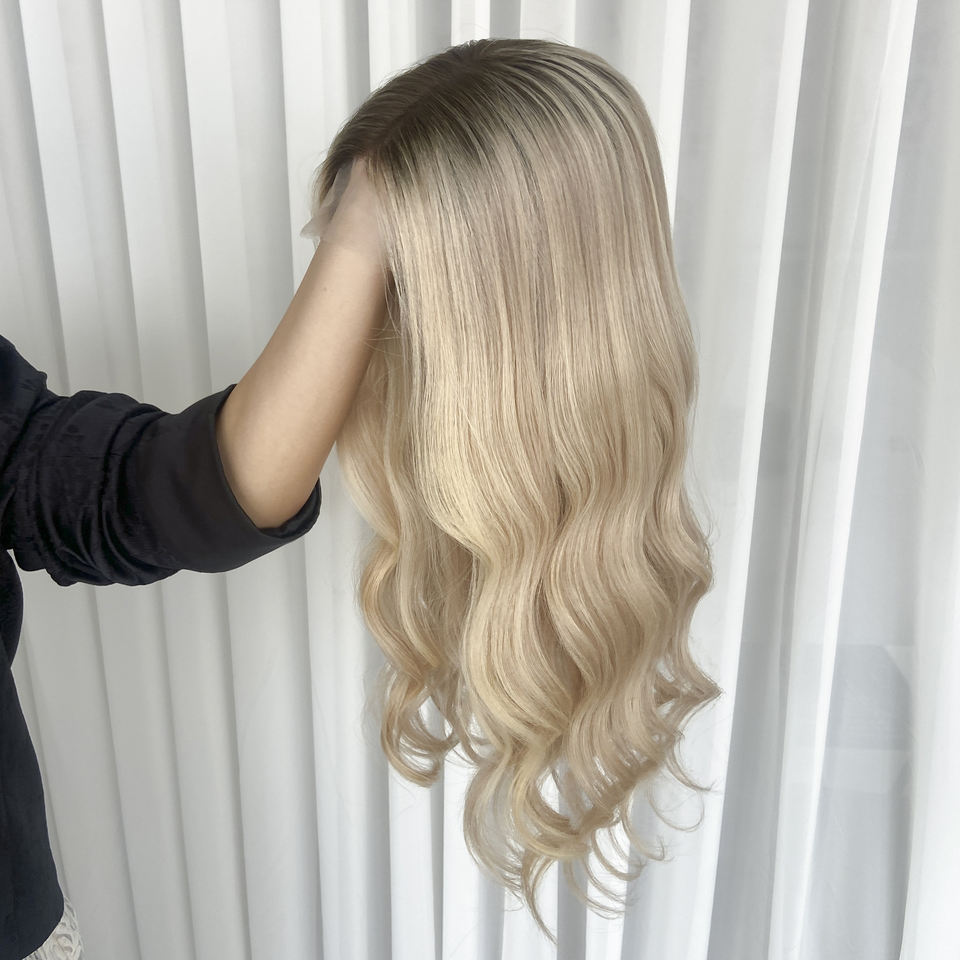 ผมแท้คุณภาพสูงแบบไม่ต้องใช้กาว ยุโรป จัดเรียงเกล็ดผม แบบ HD Lace ความหนาแน่น 150% รุ่น CT15 สีบลอนด์แชมเปญ ขนาด 18-24 นิ้ว ขายส่ง