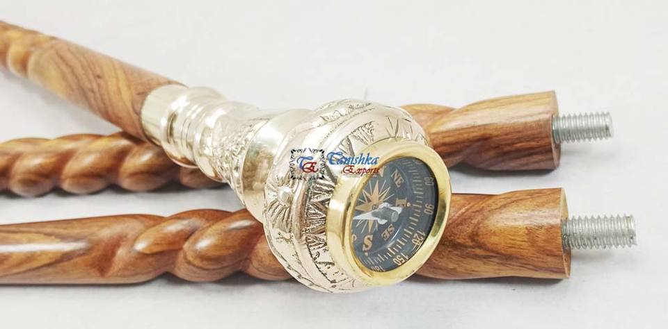 ไม้เท้าพับได้ทำมือคุณภาพสูงจากทองเหลืองและไม้ ดีไซน์อาร์ตเดโคสไตล์ทะเล สำหรับผู้สูงอายุ เดินป่า ตั้งแคมป์ ยี่ห้อ Tanishka ขายส่ง