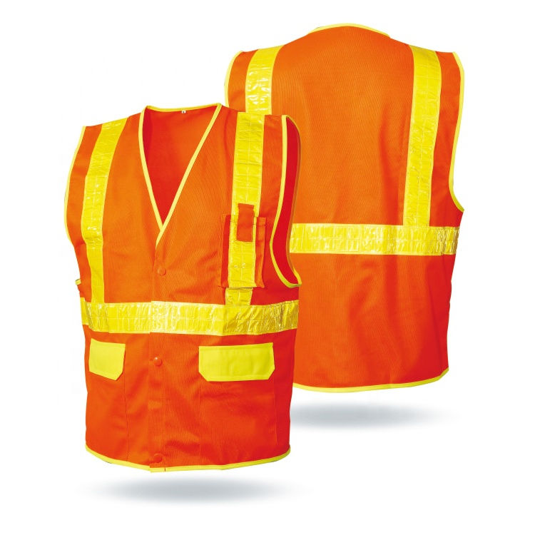 เสื้อกั๊กนิรภัยแบบสะท้อนแสงสำหรับผู้ชาย100% ไฟแฟลช LED ผ้าโพลีเอสเตอร์ ANSI Class 1 EN ISO 20471 Class 2