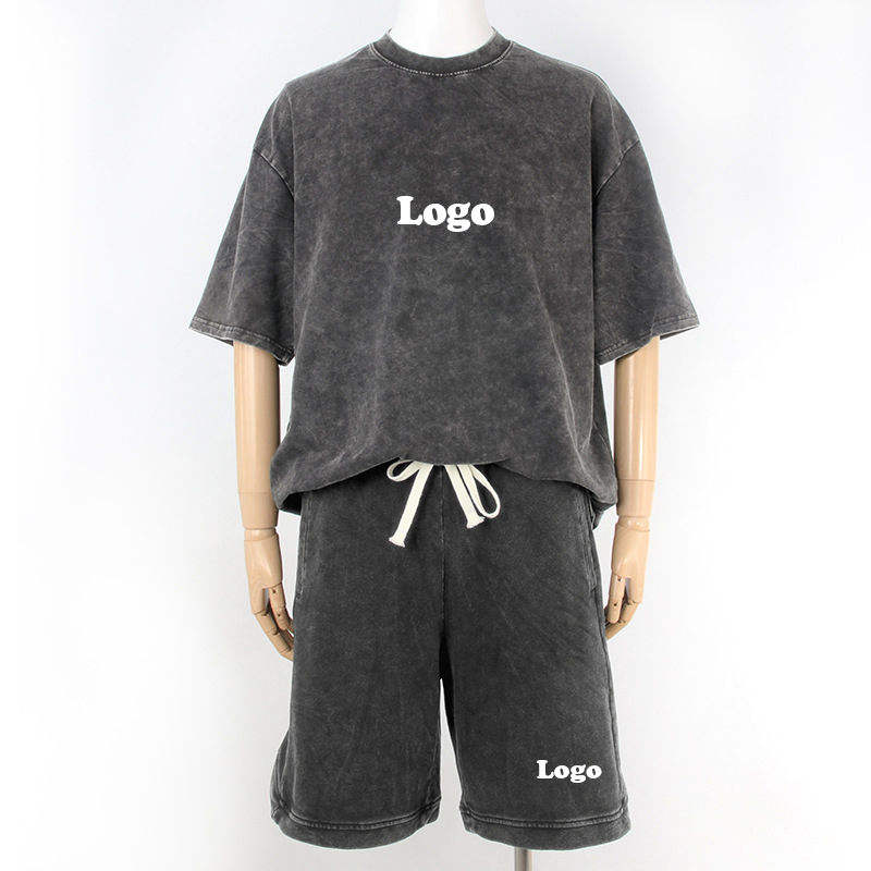 เสื้อยืดและกางเกงขาสั้นผู้ชายไซส์ใหญ่ ผ้าโพลีเอสเตอร์/คอตตอน ระบายอากาศได้ดี สไตล์วินเทจ ซักแล้ว ไม่ยับ พร้อมสกรีนโลโก้ตามสั่ง คุณภาพสูง ขายส่ง