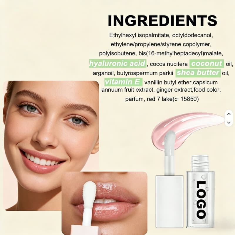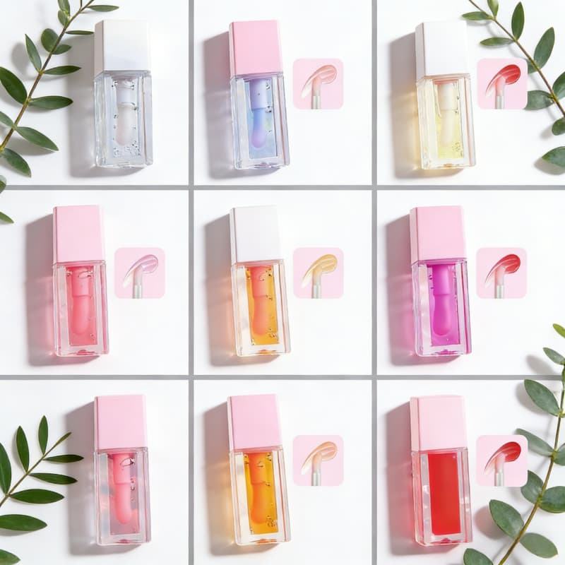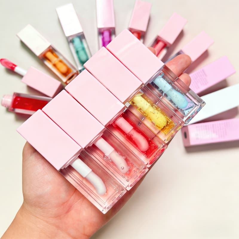 น้ำมันแต่งกลิ่นลิปกลอสคุณภาพสูงขายส่ง แบรนด์ส่วนตัว ลิปออยล์ใสสีชมพูแบบวีแกน ช่วยให้ริมฝีปากดูอวบอิ่ม