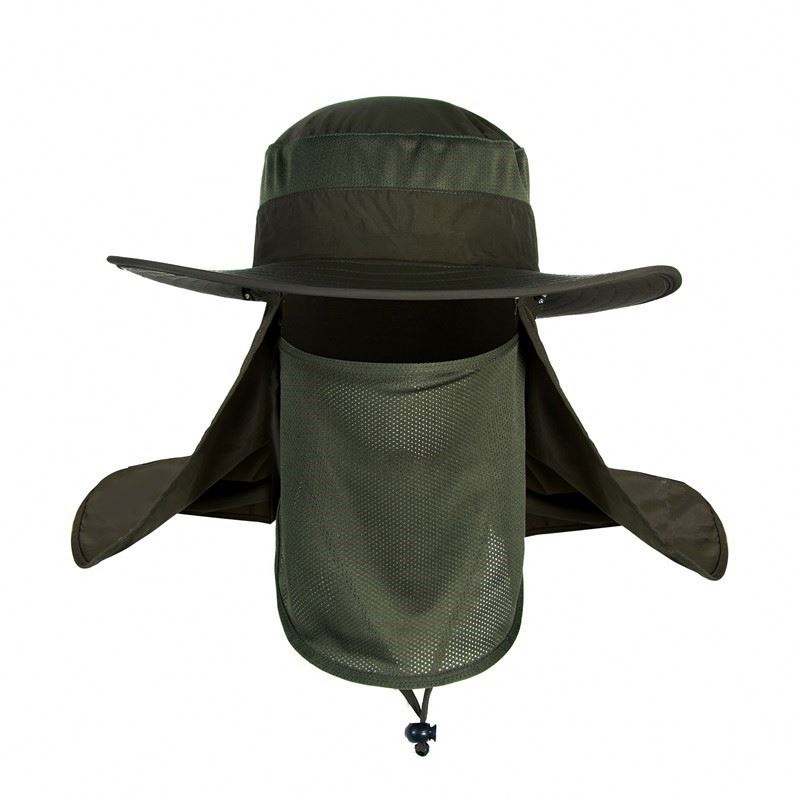 Wholesale High Quality Low Moq Custom Blank Bucket Cap Uv Fishing Hat With Neck Cover and Face Cover