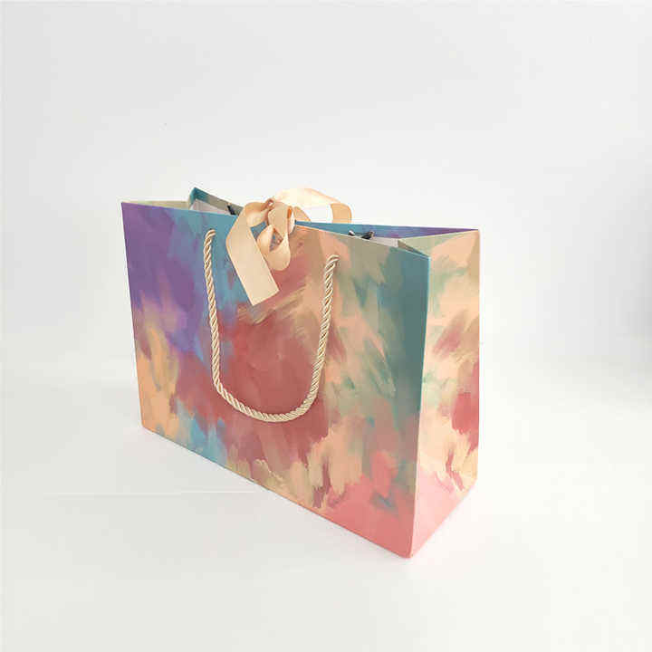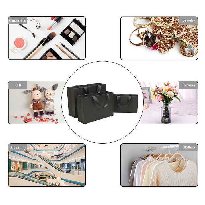 กระเป๋าของขวัญกระดาษขนาดเล็กด้ามจับเป็นริบบิ้นพิมพ์โลโก้ได้ตามต้องการสำหรับกระเป๋าเครื่องประดับ