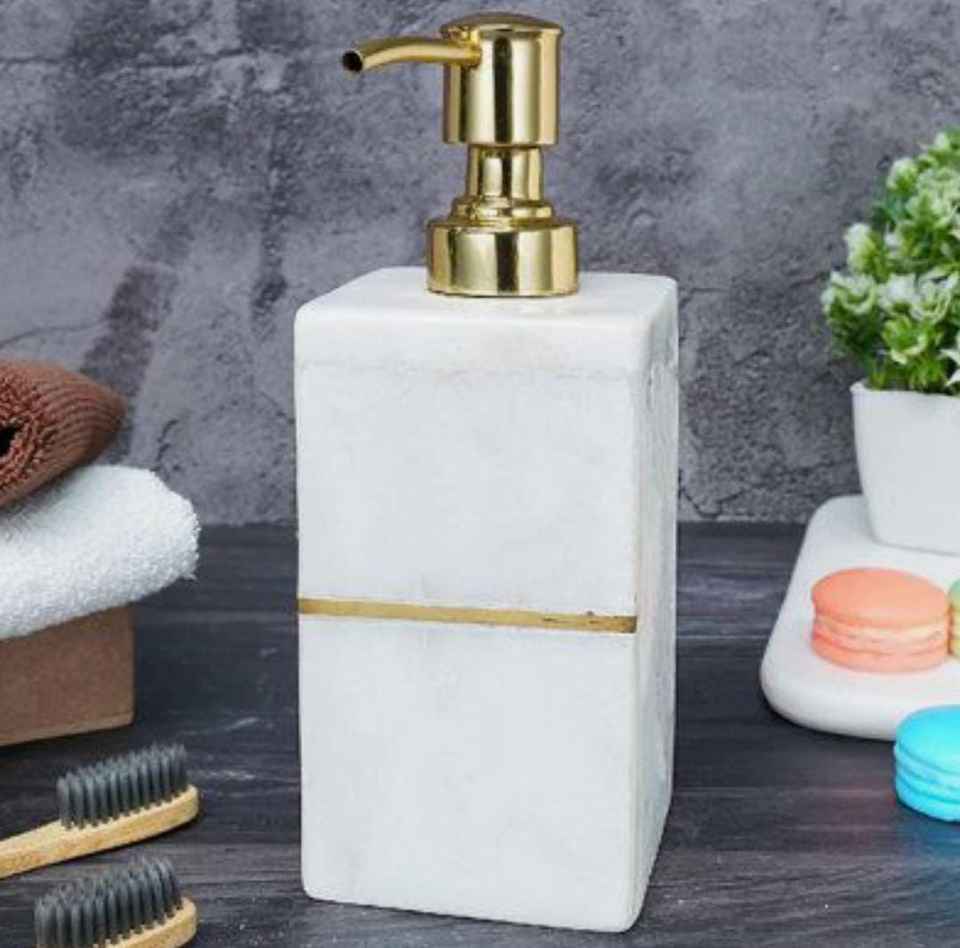 เครื่องจ่ายสบู่แบบอัตโนมัติและทำด้วยมือลายหินอ่อนพร้อมโลโก้แบบเติมได้เองสำหรับใช้ในห้องน้ำดีไซน์ทันสมัย