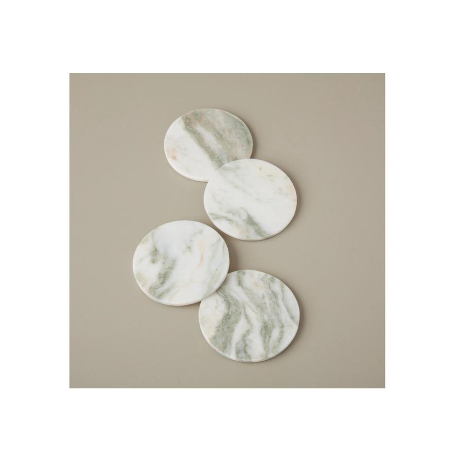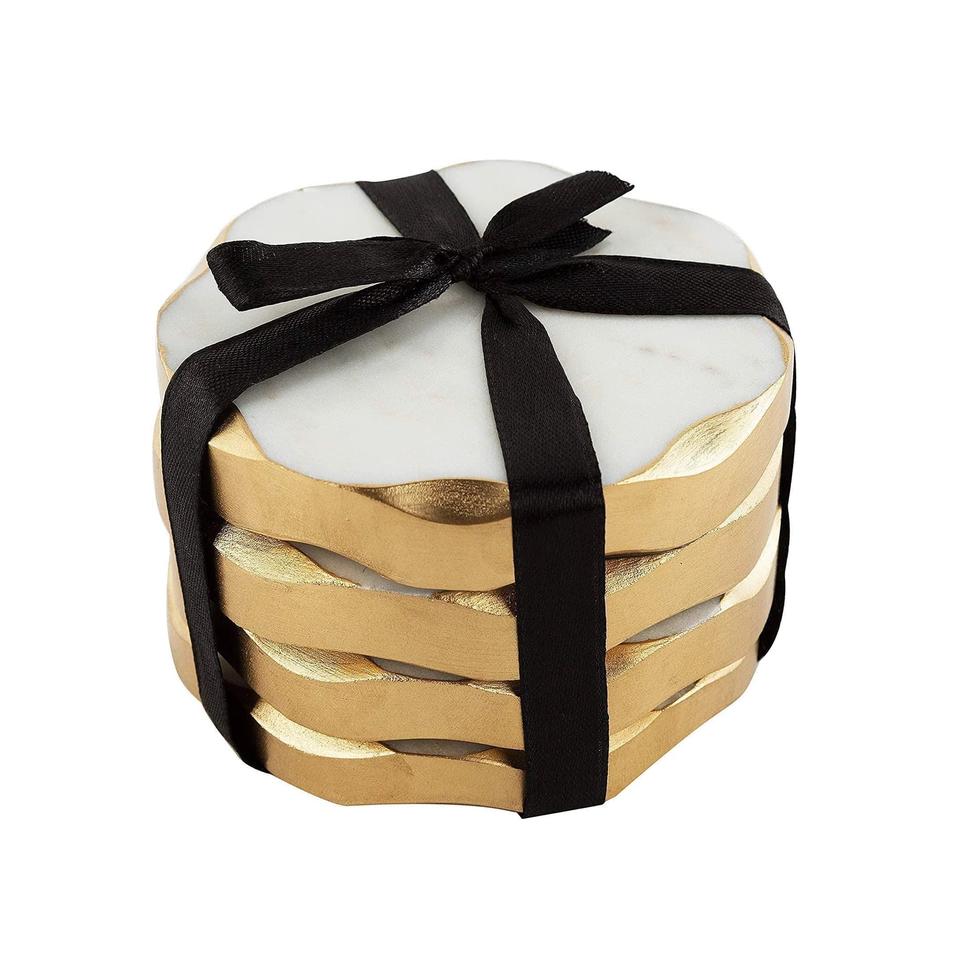 ชุดถาดรองแก้วหินอ่อนสีขาว4ชิ้นจานรองแก้วทรงกลมทำจากธรรมชาติขอบทอง