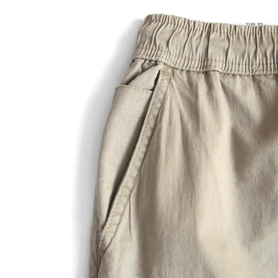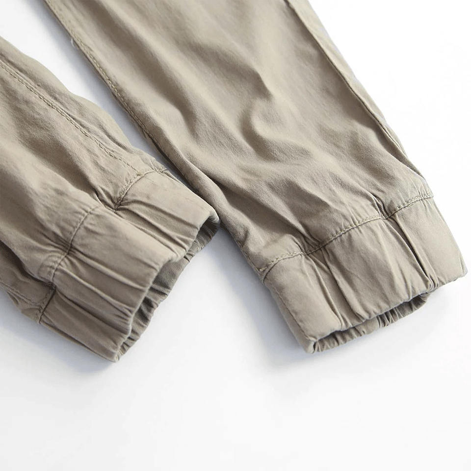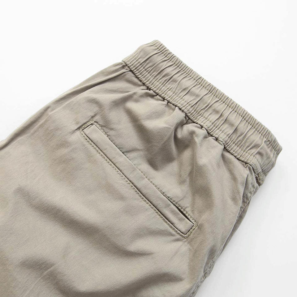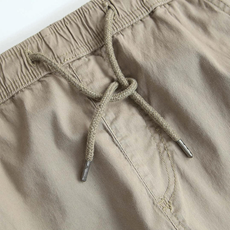 กางเกงจ็อกเกอร์ลำลองผู้ชายคุณภาพสูงขายส่ง ทรงเข้ารูป สีกากี ผ้าทวิล ผสมคอตตอนและสแปนเด็กซ์ เอวยางยืด กางเกงคาร์โก้ผู้ชาย